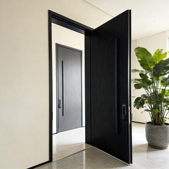 Porta d'ingresso pivotante per villa residenziale in alluminio Vogue da 4 metri di altezza, colore nero