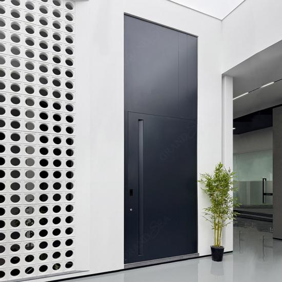 Porte d'ingresso pivotanti in alluminio completamente impermeabili, verniciate di nero, di lusso e di alta qualità.